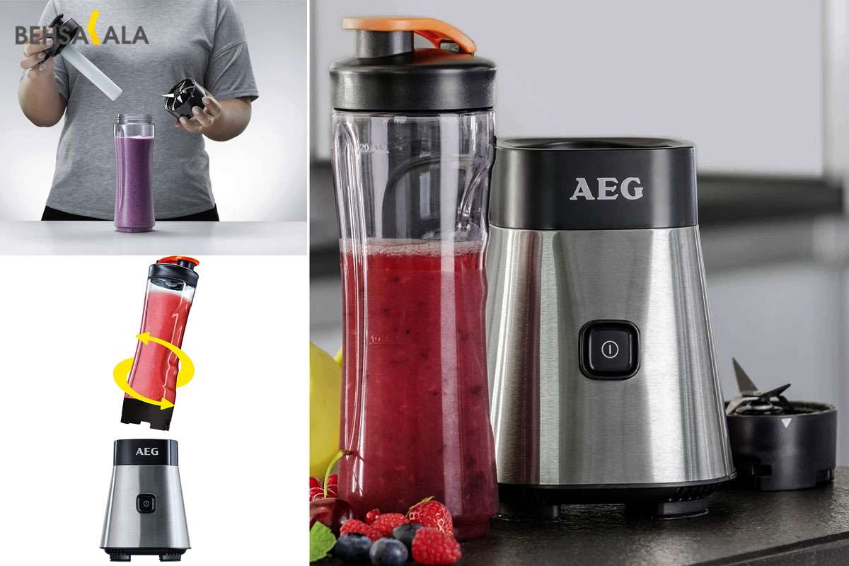 اسموتی ساز آاگ مدل SB2400 یکی از پرطرفدارترین میکسرهای کوچک و کاربردی است و مخصوص افرادی طراحی شده که به تغذیه سالم و سبک زندگی پرانرژی اهمیت می دهند. این دستگاه با طراحی جمع و جور، قدرت موتور بالا و قابلیت حمل آسان، می تواند بهترین همراه برای تهیه نوشیدنی های تازه و مغذی باشد. این اسموتیساز با ظاهری ساده و مدرن، فضای کمی از آشپزخانه را اشغال می کند. بدنه دستگاه از پلاستیک مقاوم و استیل ساخته شده که علاوه بر زیبایی، دوام بالایی دارد. یکی از نقاط قوت این مدل وجود بطری قابل حمل Tritan با درب ضد نشت است که می توانید بعد از آماده شدن نوشیدنی، همان بطری را همراه خود به محل کار، باشگاه یا سفر ببرید. اسموتی ساز AEG SB 2400 به موتوری با توان 300 وات مجهز گردیده که برای خرد کردن میوه های تازه، سبزیجات و حتی یخ در تکه های کوچک عملکرد بسیار خوبی دارد. تیغه های استیل ضدزنگ دستگاه با طراحی چهارپر، بهگونه ای ساخته شدهاند که مواد غذایی را بطور یکنواخت مخلوط کرده و یک اسموتی نرم و یکدست به شما تحویل می دهند. کارکرد این دستگاه بسیار ساده است. کافیست مواد مورد نظر را داخل بطری بریزید، آن را روی پایه قرار دهید و دکمه را بفشرید. در چند ثانیه اسموتی تازه آماده می شود. بطری قابلیت شستشو در ماشین ظرفشویی را هم دارد که این موضوع باعث صرفه جویی در زمان و راحتی بیشتر می گردد. همچنین دارای پایه های ضدلغزش است تا هنگام کار ثابت بماند. سیستم ایمنی طوری طراحی شده که تا بطری به درستی روی پایه قرار نگیرد، موتور روشن نخواهد شد که این ویژگی باعث افزایش طول عمر دستگاه و اطمینان خاطر هنگام استفاده می شود.